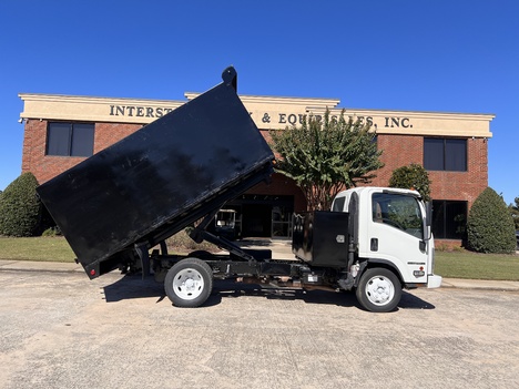 2022 ISUZU NQR SINGLE AXLE GAS ENGINE DUMP TRUCK, WITH ONLY 70,000 MILES, 17,950 GVWR NON CDL, AUTOMATIC LOCKS AND WINDOWS, CLOTH INTERIOR, 14FT SJ TRUCK BODIES DUMP BODY WITH TOOLBOX AND SWINGOUT REAR DOOR. THIS TRUCK WILL BE SOLD WHERE IT SIT...