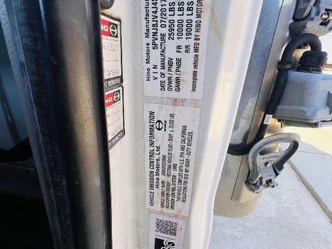 2018 HINO 268 REEFER TRUCK, 242,745 MILES, HINO JO8E DIESEL ENGINE, AUTOMATIC TRANSMISSION, SINGLE AXLE, AIR BRAKE, SPRING RIDE SUSPENSION, 25,950 GVWR, NON CDL, LEATHER INTERIOR, AUTOMATIC WINDOWS, AC & HEAT, EQUIPPED WITH BLUETOOTH RADIO FOR HANDS FREE COMMUNICATION, MORGAN 20X97X102 REFRIGEARTION BOX WITH A SWINGOUT CURBSIDE DOOR AND DUAL REAR SWINGOUT DOORS, EXTRUDED ALUMINUM FLOORING, THERMOKING T-880R WHISPER REEFER UNIT WITH 6,463 HOURS. THIS TRUCK COMES WITH A 45 DAY TEMPORARY TAG AND ONE YEAR COMPLETED DOT INSPECTION. ADDITIONAL WARRANTY THROUGH TRUCK MASTERS IS AVAILABLE FOR AN ADDITIONAL FEE.